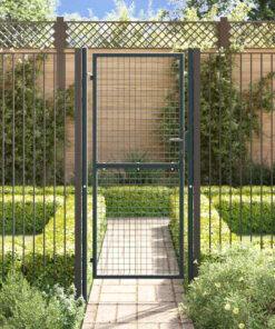Het tuinhek is hoogwaardig afgewerkt en vervaardigd uit gegalvaniseerd staal met een gepoedercoate afwerking die roestbestendig is en een stevige constructie vormt. Er zitten twee zijpalen aan met boutscharnieren, zodat het eenvoudig te installeren is.
