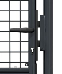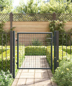 Het tuinhek is hoogwaardig afgewerkt en vervaardigd uit gegalvaniseerd staal met een gepoedercoate afwerking die roestbestendig is en een stevige constructie vormt. Er zitten twee zijpalen aan met boutscharnieren, zodat het eenvoudig te installeren is.