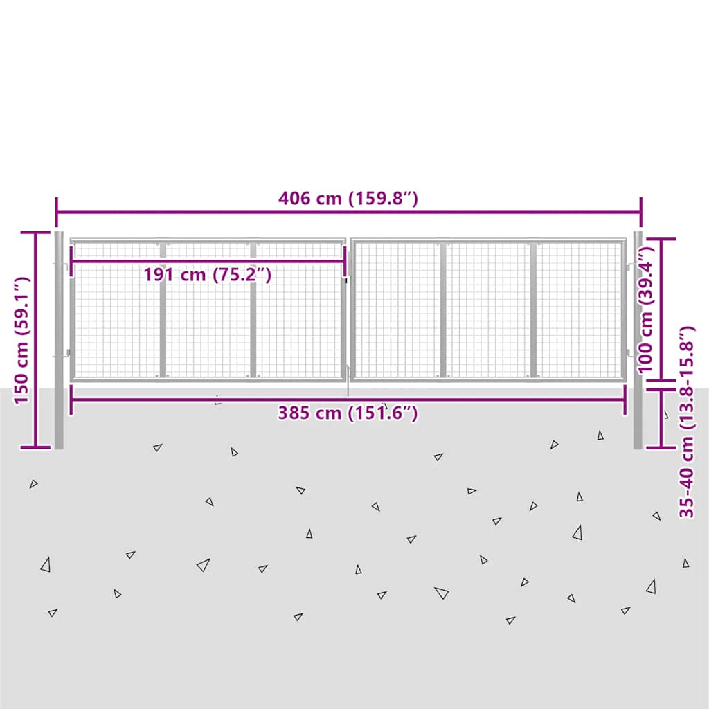 Onze poort is vervaardigd van gehard staal dat in de gewenste vorm is gebogen en professioneel is gelast en verzinkt voor duurzaamheid. Hij wordt geleverd met een boutscharnier voor snelle vergrendeling en montagepalen voor eenvoudige installatie. De levering bevat tevens 3 bijpassende sleutels.