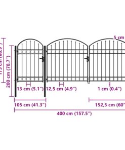 Dankzij het elegante ontwerp met gewelfde bovenkant en sterke horizontale beugels om het frame te versterken, zorgt onze tuinpoort voor een hoge mate van veiligheid en vormt hij een fantastische ingang naar je eigendom. De poort is vervaardigd van gepoedercoat staal en is gepoedercoat tegen roest en corrosie. Bovendien is deze poort uitgerust met een vergrendelingssysteem en wordt hij geleverd met drie stevige palen samen met stevige scharnieren voor eenvoudige installatie. Daarnaast helpt de meegeleverde grondgrendel bij het bevestigen van de twee helften van de poorten voor extra veiligheid. Deze poort is een uitstekende combinatie van stijl, kracht en stabiliteit!