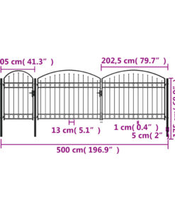 vidaXL Tuinpoort met gebogen bovenkant 2×5 m staal zwart