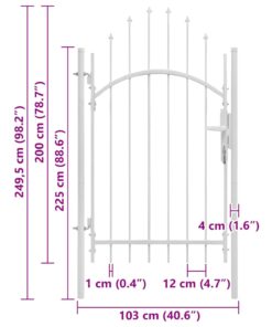 Dankzij het elegante, gebogen bovenontwerp en de sterke horizontale schoren ter versteviging van het frame, biedt onze tuinpoort een hoge mate van veiligheid en vormt tegelijkertijd een fantastische entree tot uw terrein. De poort is gemaakt van robuust staal en is gepoedercoat tegen roest en corrosie. Deze poort is voorzien van een vergrendelingssysteem en wordt geleverd met twee massieve palen en stevige scharnieren voor eenvoudige installatie.