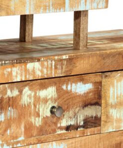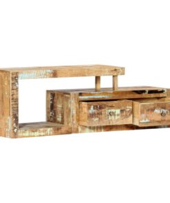 De hifi-kast is gemaakt van massief gerecycled hout dat afkomstig is van balken, vloeren en steunbalken van oude gebouwen. Dit hout bestaat uit verschillende houtsoorten, zoals grenen, teak, beuken, eiken, ceder, mangohout en acacia. Dit betekent dat het teruggewonnen hout de kenmerken van deze verschillende houtsoorten heeft. Gerecycled hout is al verouderd, verweerd en gedroogd en krimpt en buigt daarom niet. Het uitmuntende vakmanschap en de delicate houtnerven maken elk meubelstuk onderscheidend en enigszins anders van elkaar. Het meubel heeft 2 lades en 1 vak en biedt dus voldoende ruimte voor het opbergen van je multimedia-apparaten, boeken en andere spullen. Het hifi-meubel is al gemonteerd; er is geen montage vereist.