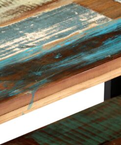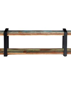 Het tv-meubel is gemaakt van massief gerecycled hout, dat de kenmerken heeft van verschillende houtsoorten, zoals teakhout, mangohout en acaciahout. Gerecycled hout is al verouderd, verweerd en gedroogd, en krimpt en buigt daarom niet. Elke stap van het bouwproces wordt met de grootste zorg uitgevoerd, of het nu gaat om polijsten, schilderen of lakken. Het vakmanschap en de prachtige houtnerven maken ieder meubelstuk uniek en nét iets anders dan de rest. De gepoedercoat ijzeren poten zorgen voor stabiliteit. Het schap aan de onderkant kan gebruikt worden voor om dvd-spelers, gameconsoles, streaming-apparaten en mediadragers netjes georganiseerd te houden.