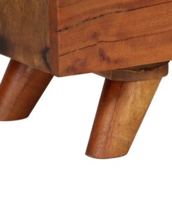 De tv-kast is vervaardigd van massief gerecycled hout dat afkomstig is van dwarsbalken, vloeren en steunbalken van oude, gesloopte gebouwen, en kan bestaan uit grenenhout, teakhout, beukenhout, eikenhout, cederhout, mangohout en acaciahout. Dit betekent dat het hergebruikte hout de karakteristieken van deze verschillende houtsoorten heeft. Gerecycled hout is al gerijpt, verweerd en gedroogd, dus het krimpt niet, buigt niet door en vereist ook geen afwerking. De tekenen van slijtage en de zichtbare nervenstructuur geven elk stuk zijn eigen geschiedenis en unieke uitstraling.