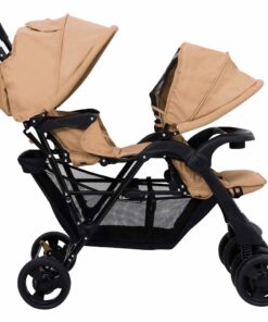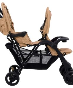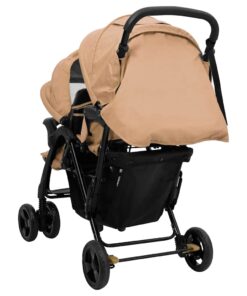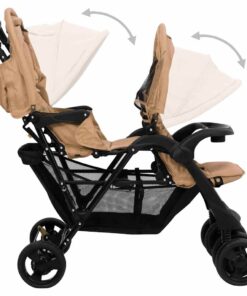 vidaXL Tweelingkinderwagen tandem staal taupe