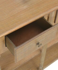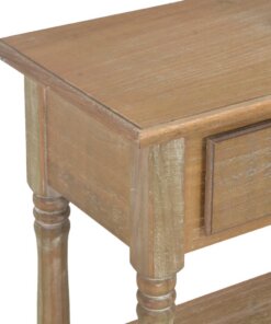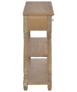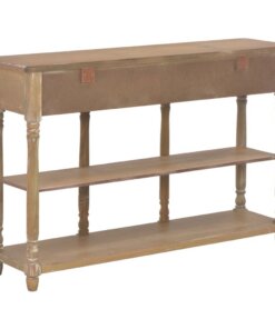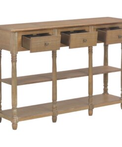 De tafel heeft een stevig MDF-blad waarop je decoratieve spullen, zoals fruitmanden en vazen, kunt plaatsen. De massief grenenhouten poten garanderen de stabiliteit en duurzaamheid. Bovendien bieden de 3 lades voldoende ruimte om allerlei kleinere spullen geordend en binnen handbereik te houden. De 2 schappen bieden extra ruimte voor het opbergen van je schoenen en andere voorwerpen.