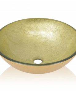 Dit basin, gemaakt van hoogwaardig gehard glas en met een goudkleurige afwerking, is een stijlvolle toevoeging aan iedere badkamer of toilet. Hij is ontworpen voor installatie op een blad.