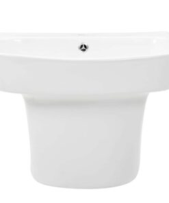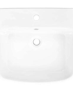 - Kwaliteitsmaterialen: Deze wastafel is gemaakt van hoogwaardig geglazuurd keramiek, met een gladde, glanzende afwerking die krasbestendig is en minimaal onderhoud vereist. De robuuste keramische constructie zorgt voor een lange levensduur, waardoor het een goede investering is voor jarenlang betrouwbaar gebruik. De sterke materiaalkeuze helpt om de uitdagingen van dagelijks gebruik aan te kunnen, terwijl de elegante uitstraling behouden blijft.