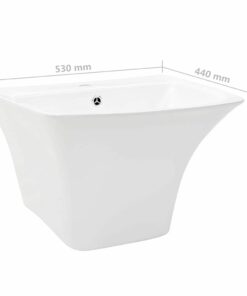 - Kenmerken/functies/ontwerp: Ontworpen voor wandmontage, bespaart deze kom ruimte in kleinere badkamers. De vorm biedt genoeg wasruimte zonder dat je vloeroppervlak verliest. Het ontwerp sluit perfect aan bij moderne interieurs die slim gebruik maken van ruimte en vorm.
