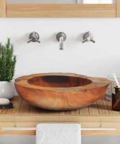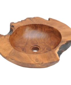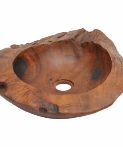 Deze unieke wastafel, gemaakt van massief teakhout met een waterafstotende afwerking, straalt een rustieke charme uit en is een echte blikvanger voor je badkamer of toilet. Hij hoort op een blad geplaatst te worden.