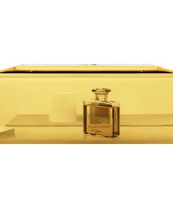 De gootsteen dient niet alleen als product voor dagelijks gebruik, maar hij is ook een versiering voor je leefruimte. Dankzij zijn trendy en eigentijdse ontwerp met glanzend gouden kleur past deze wastafel beslist in elk interieur. De wastafel is gemaakt van keramiek en is dus zeer eenvoudig schoon te maken. Bovendien geeft de hoogglansafwerking een charmant tintje aan dit badkamermeubel. De wastafel heeft een kraangat voor het installeren van een kraan.
