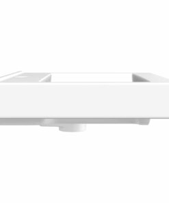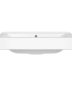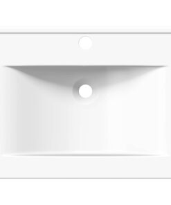 Deze rechthoekige wastafel van hoogwaardig keramiek is een stijlvolle toevoeging aan iedere badkamer of toilet. Zijn hoogglans afwerking geeft hem een modern maar elegant ontwerp.
