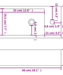 Deze rechthoekige wastafel van hoogwaardig keramiek is een stijlvolle toevoeging aan iedere badkamer en toilet. Zijn hoogglans afwerking geeft hem een modern maar elegant ontwerp.
