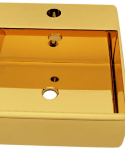 De gootsteen dient niet alleen als product voor dagelijks gebruik, maar hij is ook een versiering voor je leefruimte. Dankzij zijn trendy en eigentijdse ontwerp past deze wastafel beslist in elk interieur. De wastafel is gemaakt van keramiek en is dus zeer eenvoudig schoon te maken. Bovendien geeft de hoogglansafwerking een charmant tintje aan dit badkamermeubel. Dankzij de overloop zal water effectief worden afgevoerd als de bak te vol raakt. De wasbak heeft een kraangat voor het installeren van een kraan.