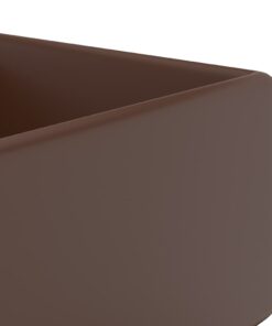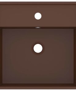 vidaXL Wastafel met overloop vierkant 41x41cm keramiek mat donkerbruin