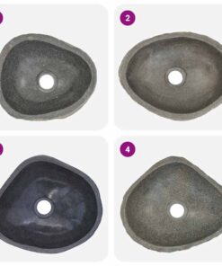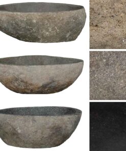 Opmerking: riviersteen is een natuurlijk product en daarom kan er verschil in kleur of vorm zijn. Bekijk de foto’s voor een aantal voorbeelden van onze producten. Het product kan in het echt lichter of donkerder zijn dan op de foto’s en soms kan het product een mix van kleuren hebben. Mocht je meerdere wasbakken bestellen, dan kunnen we niet garanderen dat de afmetingen, vorm en kleur hetzelfde zijn.