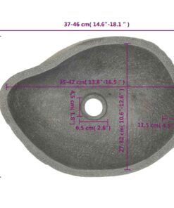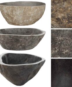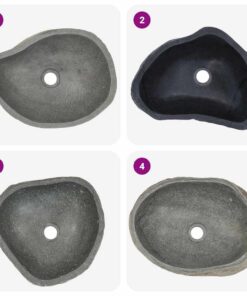 Opmerking: riviersteen is een natuurlijk product en daarom kan er verschil in kleur of vorm zijn. Bekijk de foto’s voor een aantal voorbeelden van onze producten. Het product kan in het echt lichter of donkerder zijn dan op de foto’s en soms kan het product een mix van kleuren hebben. Mocht je meerdere wasbakken bestellen, dan kunnen we niet garanderen dat de afmetingen, vorm en kleur hetzelfde zijn.