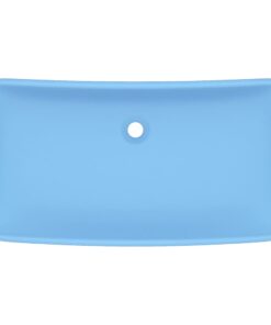 Deze rechthoekige wastafel van hoogwaardig keramiek is een stijlvolle toevoeging aan elke badkamer en toilet. Zijn matte afwerking en het luxe ontwerp geven hem een moderne, maar elegante uitstraling.