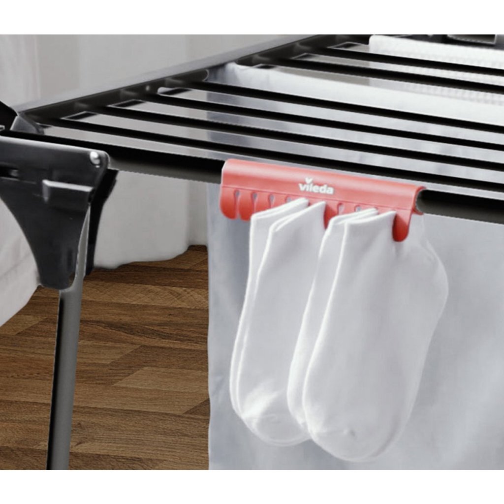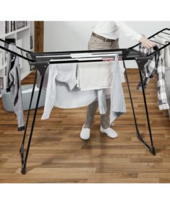 Zijn XXL waslijnen zorgen ervoor dat er minder sporen achterblijven op uw was, terwijl de handige wieltjes het gemakkelijk manoeuvreerbaar maken, zelfs wanneer het is volgeladen. Dankzij zijn verbeterde veiligheidsfuncties en stijlvolle ontwerp zal u het drogen van uw was op dit droogrek als uitzonderlijk efficiënt en handig ervaren.Dit wasrek heeft ook 2 sokkenhouders voor nog meer droogruimte. 20 meter drooglengte. Kleur: zwart.