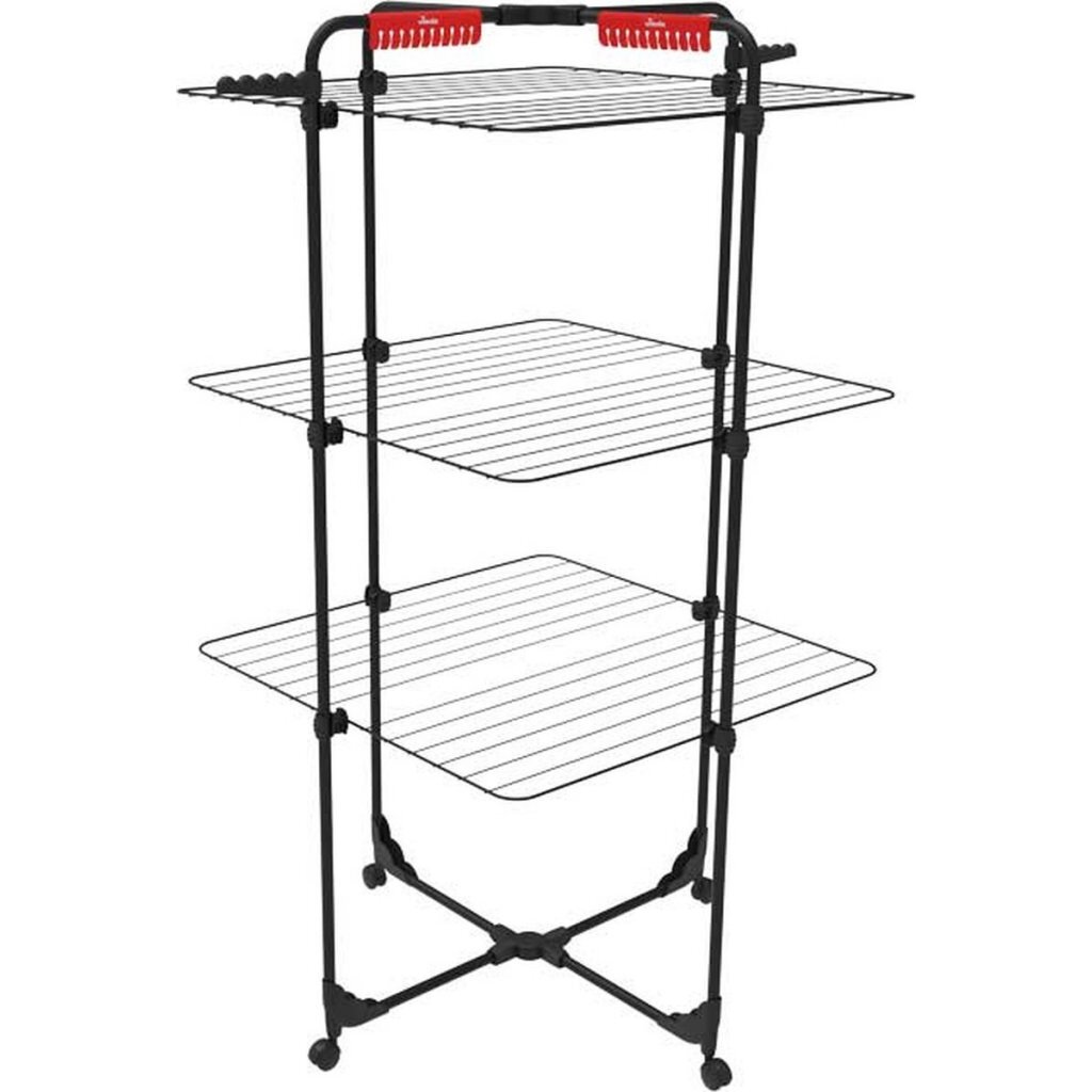 Dit compacte droogrek biedt meer dan30 meter drooglengteen is toch perfect geschikt voor kleine ruimtes. Deaanpasbare droogplateausmaken flexibele droogopties mogelijk waaraan verschillende groottes van wasgoed gehangen kunnen worden. Vouw het rek wanneer u het niet gebruikt, gewoon plat om hetgemakkelijk op te bergen. De zwenkwieltjes zorgen voor een moeiteloze mobiliteit, zelfs wanneer het droogrek is volgeladen met natte was.
