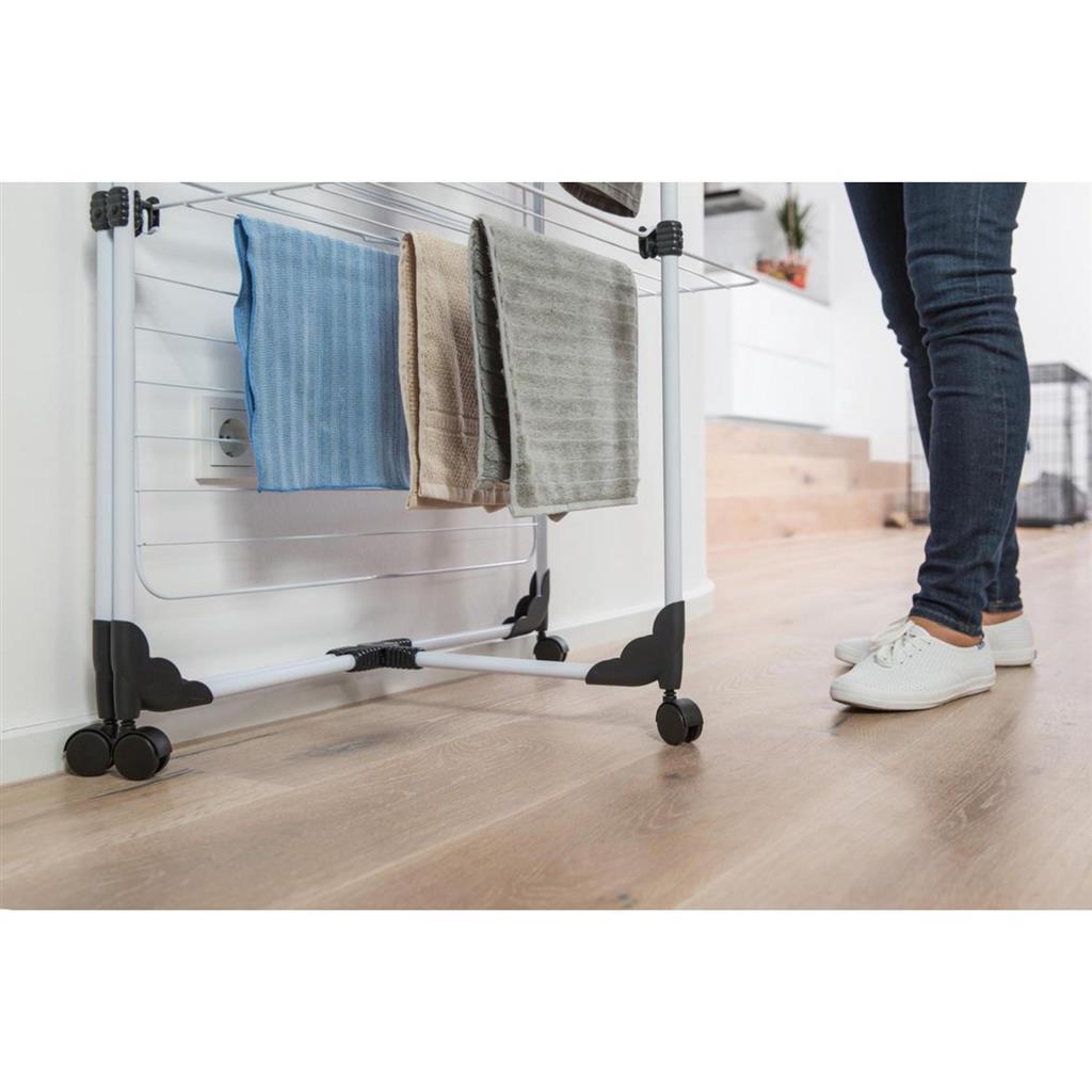 - Een totale droogcapaciteit van 40 m, zonder veel vloeroppervlak in te nemen. Kan ook in de douche gebruikt worden
