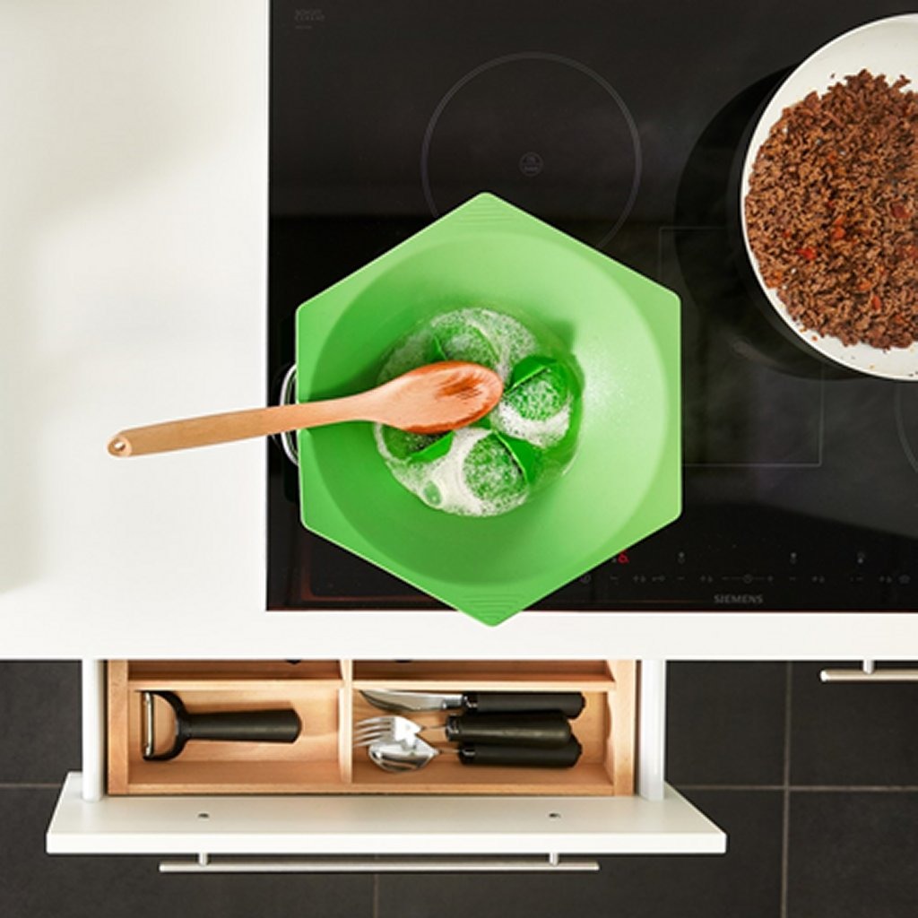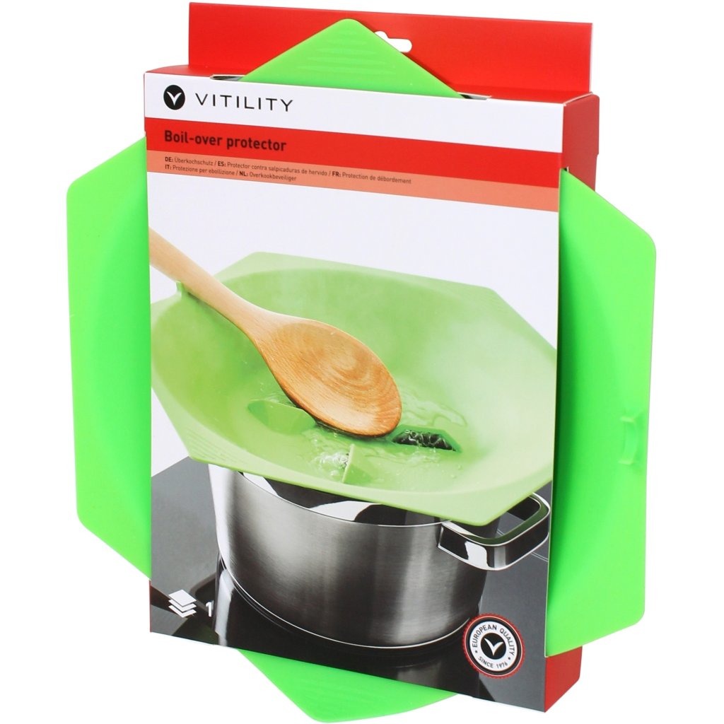 Met de overkookbeveiliger van Vitility komt een overkokende pan niet meer voor. Dat voorkomt ongelukken en een knoeiboel op de kookplaat. De overkookbeveiliger zorgt ervoor dat het hete water makkelijk verdampt en de inhoud van de pan op temperatuur blijft.