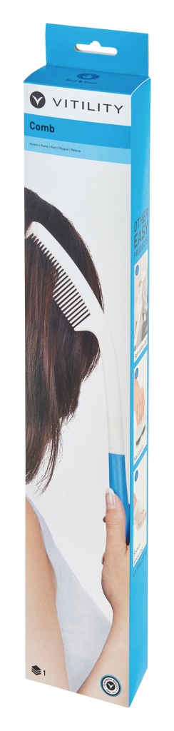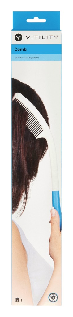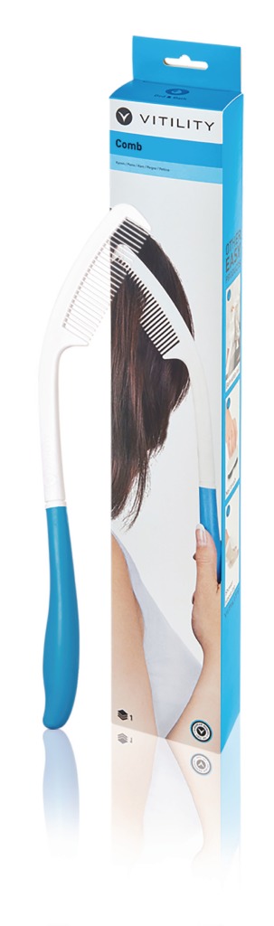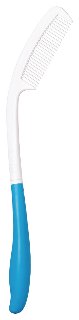 De ergonomisch ontworpen kam zorgt ervoor dat men bij de boven- en achterkant van het hoofd kan komen, zonder de hand, arm of schouder onnodig te belasten. Het handvat is voorzien van antislipmateriaal.