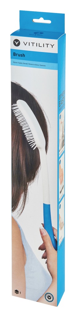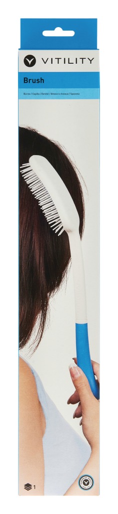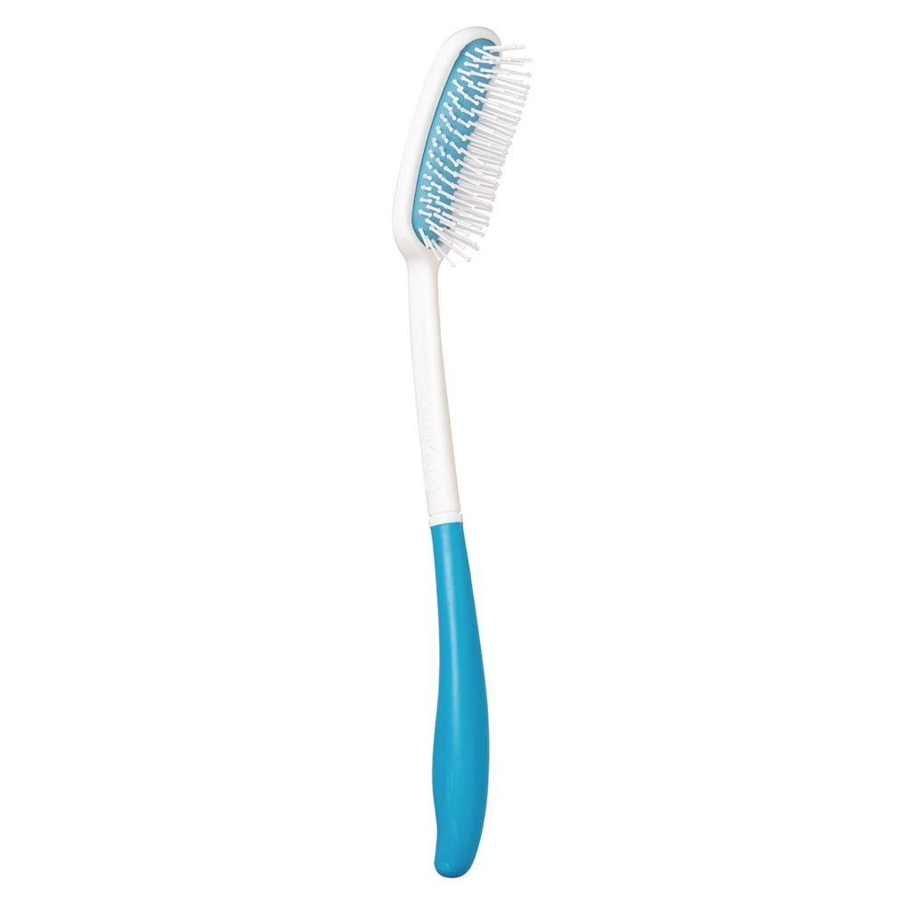 De ergonomisch ontworpen borstel zorgt ervoor dat men bij de boven- en achterkant van het hoofd kan komen, zonder de hand, arm of schouder onnodig te belasten. Het handvat is voorzien van antislipmateriaal.