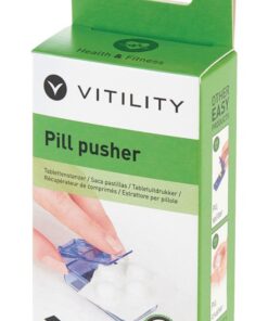 Een makkelijke manier om tabletten met één hand uit een doordrukstrip te drukken. Plaats de doordrukstrip, met de gewenste tablet, over de opening en druk op het klepje de tablet naar beneden. De tablet valt dan in een bakje. Vervolgens wordt de deksel open geschoven om de tablet te pakken.