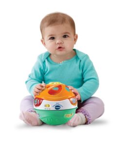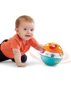 Kijk de bal eens gaan, ga er maar achteraan! Druk op de toetsen om kennis te maken met dieren, cijfers en kleuren én speel een zoekspelletje. De bal is eenvoudig om te bouwen naar een roller of trommel voor nog meer speelplezier.Speel met de bal die vanzelf beweegt en luister naar de vrolijke reacties. De roller beweegt vanzelf en moedigt kleintjes aan om te kruipen. Tik op de trommel om stoere geluidseffecten te horen. 12 melodietjes en 4 gezongen liedjes. Stevig en duurzaam design. Nederlands gesproken. Automatische uitschakeling. Geschikt voor kinderen vanaf 9 maanden.