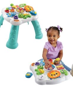 De verschillende speelelementen nemen kleintjes mee op een avontuur door het dierenrijk en laten kennismaken met jungledieren, cijfers, kleuren, vormen, fruit en nog veel meer! Luister tijdens het spelen naar grappige geluiden, vrolijke zinnetjes, melodietjes en gezongen liedjes of maak zelf muziek met de xylofoon van de krokodil en breng jouw muzikaliteit ten gehore! De tafelpoten kunnen worden verwijderd om ook zittend te spelen en ontdekken!