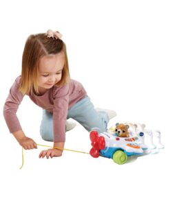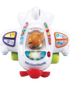Dit speelgoed is educatief en ontworpen om de zintuigen van baby’s en peuters te stimuleren tijdens het spelen. Het vliegtuig bevat kleurrijke knoppen, interactieve lichten en 40+ geluidseffecten. Dit speelgoed leert kinderen verschillende letters, cijfers, vormen en dieren op een leuke manier. Wanneer er op het beertje wordt gedrukt zal de propeller gaan draaien. Geschikt voor kinderen van 9 tot 36 maanden.