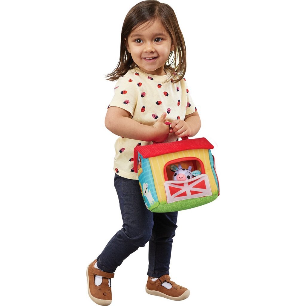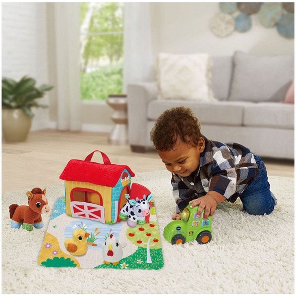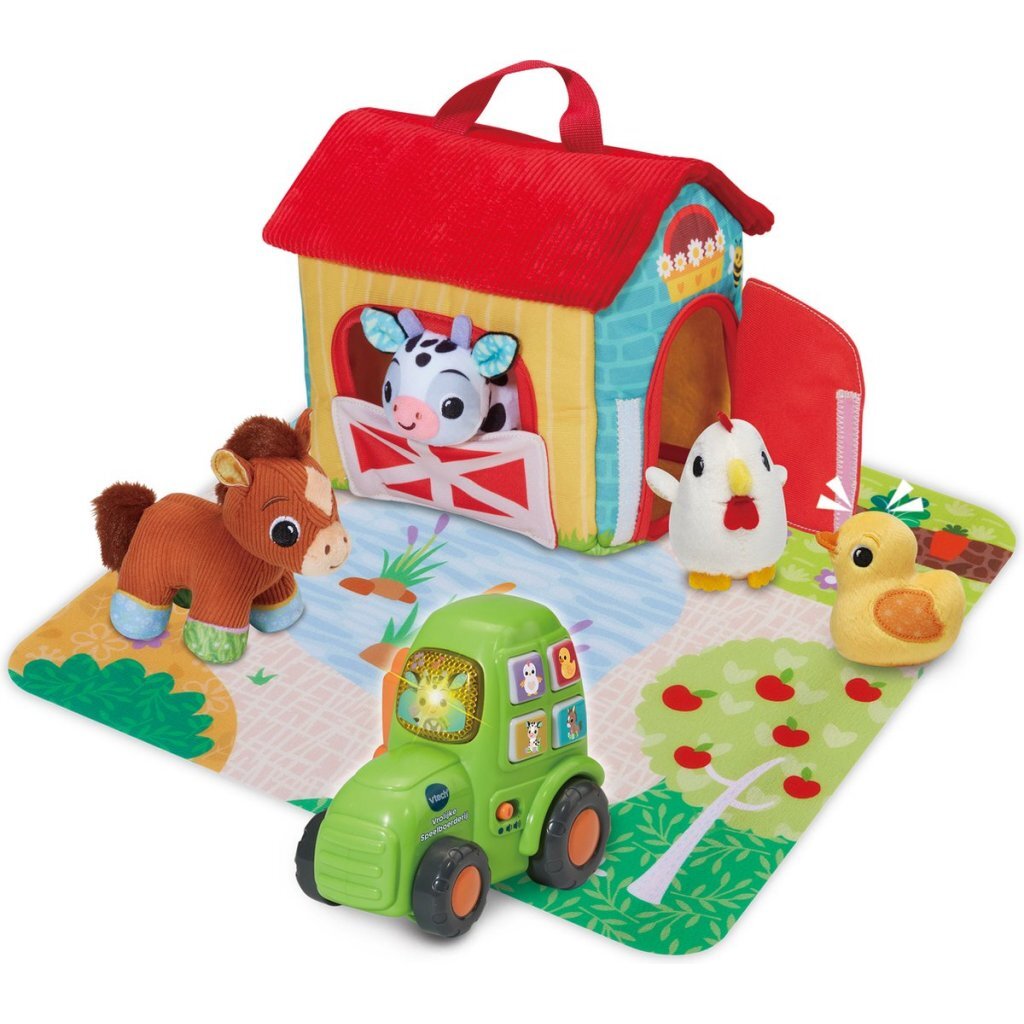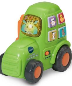 Druk op de toetsen van de tractor om kennis te maken met de dieren en hun geluiden of luister naar gezongen liedjes en melodietjes. Inclusief 4 pluchen diertjes, speelmat en elektronische tractor. Geschikt voor kinderen vanaf 6 maanden.
