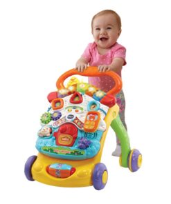 - De knipperende lichtjes en vrolijke melodietjes moedigen het kleintje aan bij het leren lopen