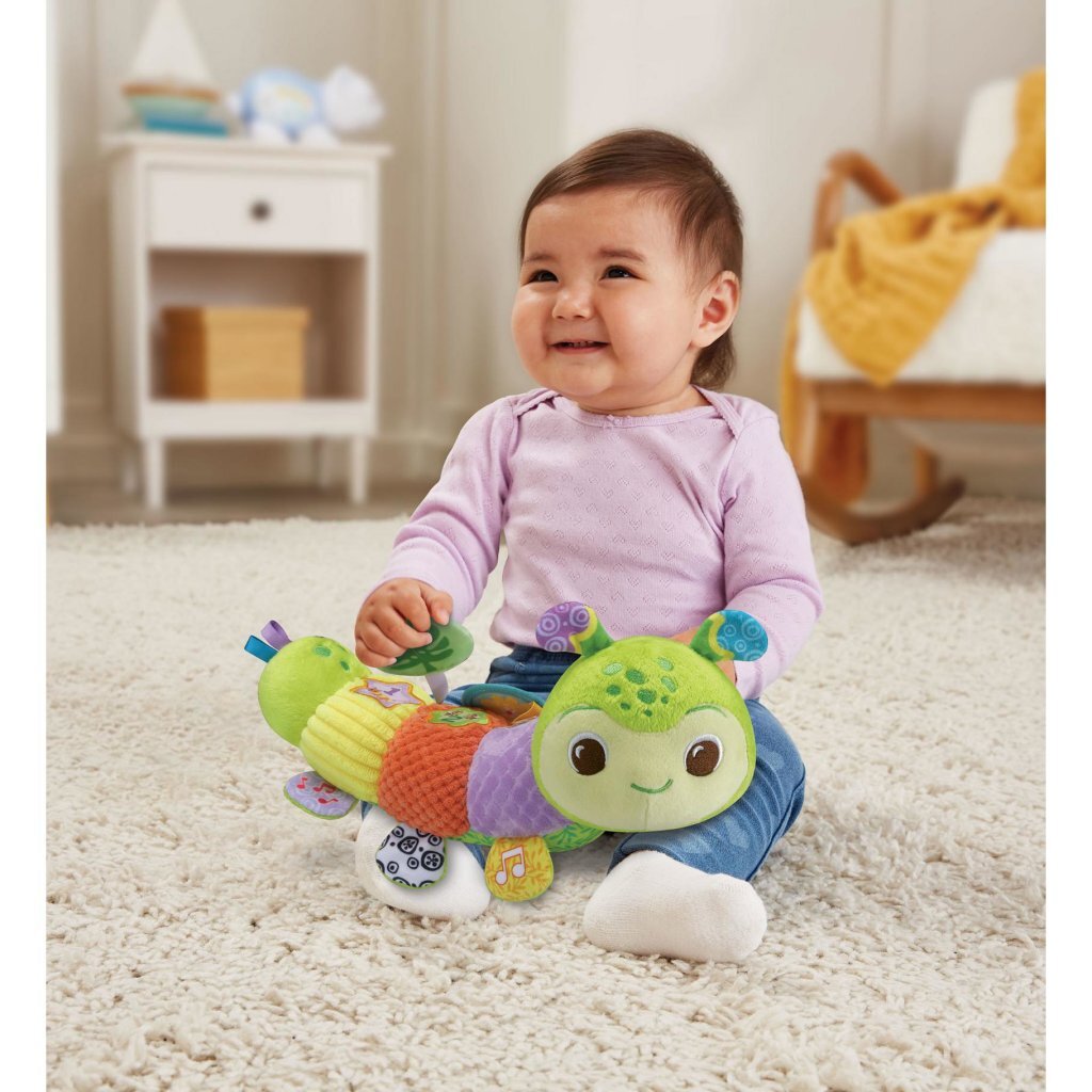 Tijd voor volop knuffel- en speelplezier met deze zachte rups! Druk op de 3 knipperende toetsen om spelenderwijs kennis te maken met cijfers, dieren en vormen. De verschillende texturen stimuleren de tastzin en het spiegeltje draagt bij aan het zelfbewustzijn. Ben jij klaar om te spelen?