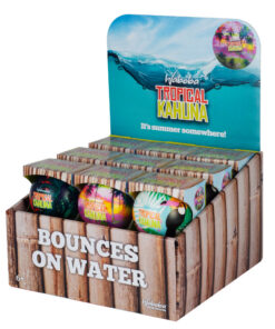Maak een dagje aan het strand nog leuker met de Tropical Kahuna bal! 3 verschillende leuke tropische printjes. Spaar ze allemaal voor nog meer speelplezier! Laat de balletjes water absorberen waardoor ze nog hoger kunnen stuiteren! Ideaal voor in het zwembad of op het strand.