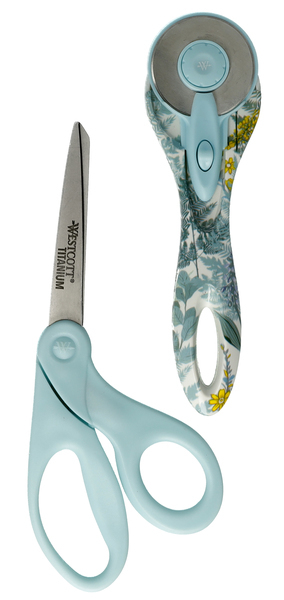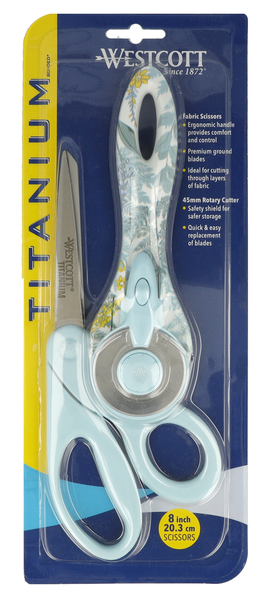 De 8″ blauwe stoffenschaar heeft een ergonomische comfortabele handgreep en is voorzien van titanium gebonden messen, die 3x harder zij dan staal en premium geslepen. Het ergonomisch gebogen handvat snijdt gemakkelijk en comfortabel op een vlakke ondergrond en is ideaal voor lagen stof.De blauw gebloemde 45 mm roterende snijmes heeft een veiligheidsschild voor opslag. Dit snijmes is voor gemiddeld gebruik om te snijden door lagen stof, papier, vilt, vinyl, garen, applicaties, geweven stof en karton. De messen hebben een levenslange garantie.