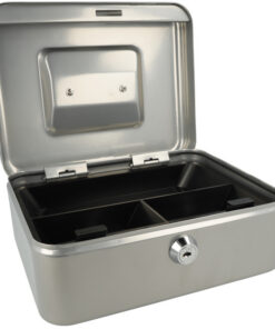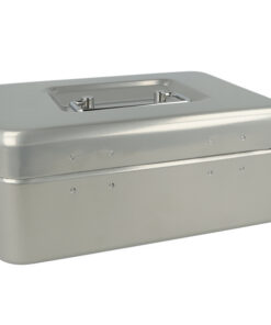 Met deze geldkist bergt u uw geld of waardevolle spullen veilig op. Deze geldkist gemaakt van staal wordt geleverd met 2 sleutels en heeft een kunststof inzet met 3 vakken voor munten. Doordat de geldkist een hangreep heeft die in de deksel valt kunt u de kist makkelijk opbergen. Afmeting: 200x161x89mm. Kleur: zilver.