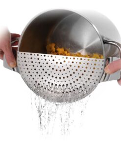 Met de hoogwaardige en praktischeWestmark afgiethulp kunt u hete gerechten veiligzeven en voorkomt u verbranding door water en stoom bij hetafgieten van pasta, rijst of groenten. Dankzij de multiperforatie is het mogelijk om overtollig water volledig weg te gieten. Het grote voordeel voor je veiligheid: het RVS is hittebestendig tot 190 graden Celsius, enblijft daardoor vormvast en staat dankzij de rolrand stevig op de pot. De twee gegoten verzonken handgrepen bieden u een veilige en stevige grip. Dankzij de platte afmetingen kan de zeef snel en eenvoudig in de keukenlade worden opgeborgen.