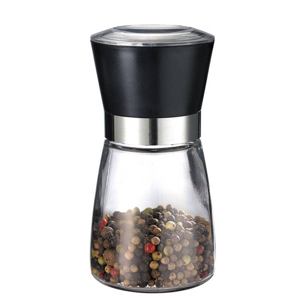EleganteWestmark glazen kruidenmolen voor het malen van droge kruiden zoals peper, grof zout en fleur de sel; ideaal voor gebruik in de horeca en thuis. Kleur: zwart/tranparant.