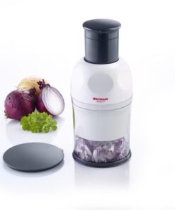 Westmark hakmolenvoor het hakken van uien, groenten, wortelen, noten enzovoorts. Met automatisch keermechanisme en gepolijste roestvrijstalen messen.Door het extra deksel verandert de hakcontainer in een luchtdichte voorraadpot. Ruimtebesparende opslag dankzij de vergrendeling voor de drukzuiger. Kleur: zwart/wit