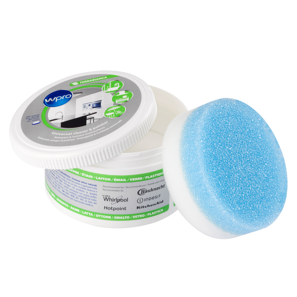 - Geleverd met een dubbelzijdige spons met een zachte (witte kant) en een (blauwe) schuurkant