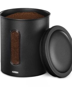 - Bewaar gemalen koffie en hele koffiebonen op de juiste manier: het kleine zwarte koffieblik met kijkvenster en aroma-sluiting is lucht- en aromadicht en garandeert zo een maximaal aroma bij elke kop koffie de perfecte manier om koffie te bewaren en vers te houden