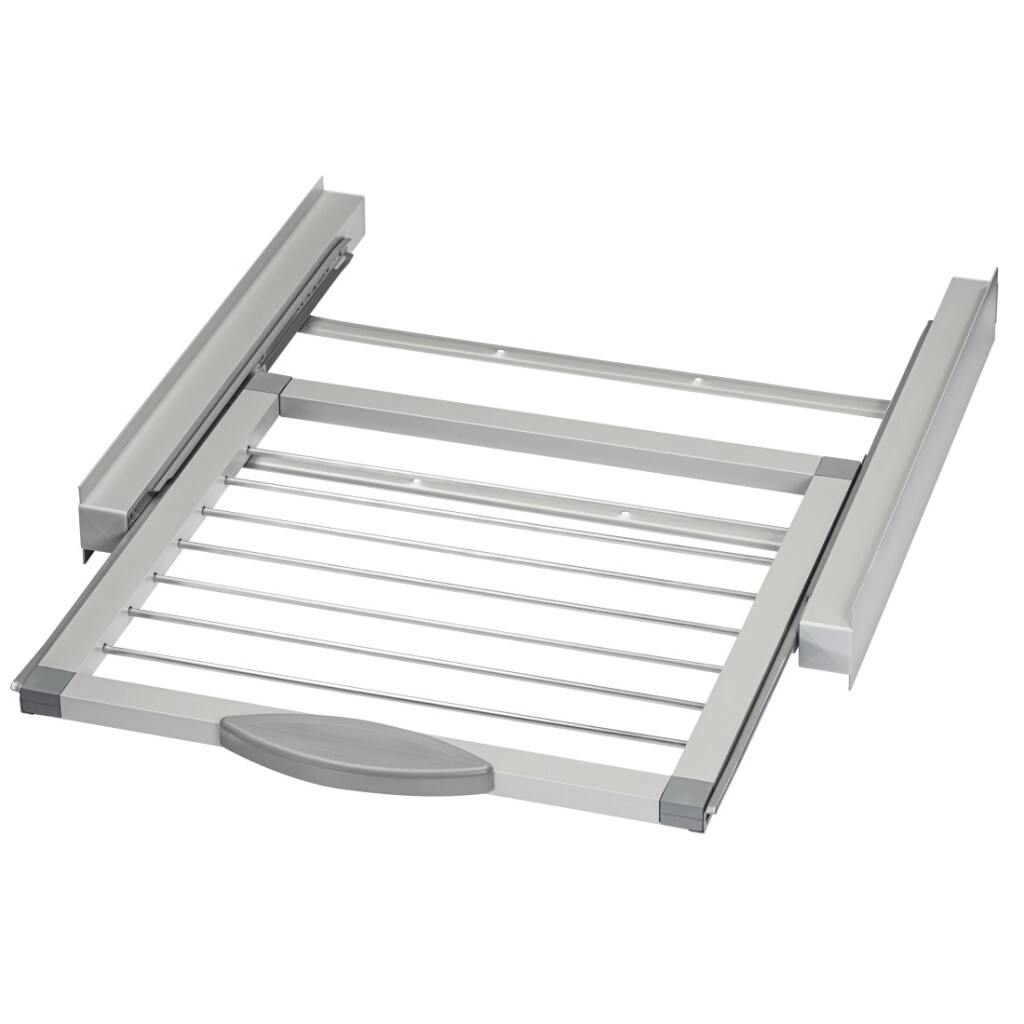 - Geïntegreerd uittrekbaar wasrek (max. 12 kg was) voor het ophangen van kleinere items op een comfortabele werkhoogte of als handige opslagplaats voor de wasmand