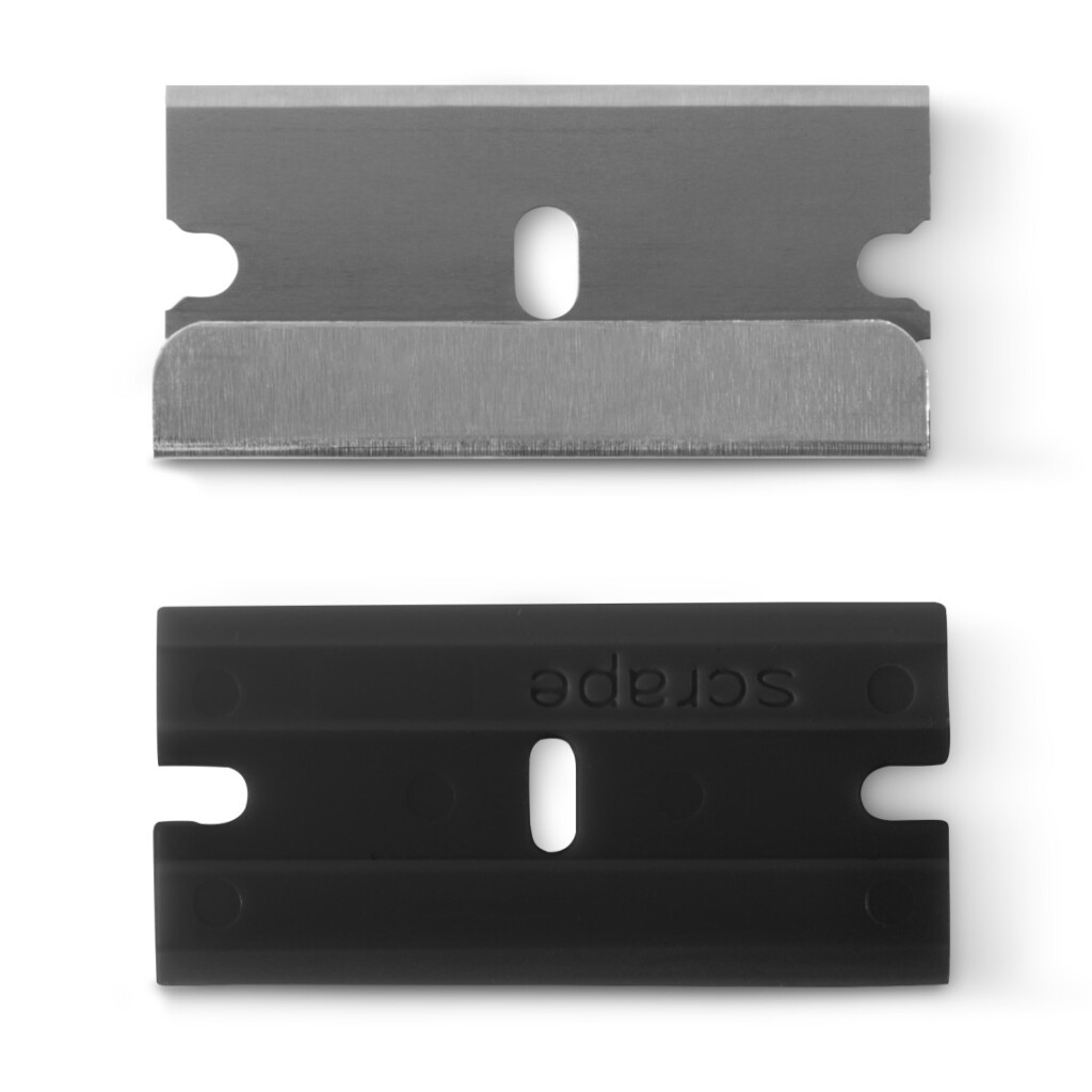 - Vervangende messen voor het snel en moeiteloos verwijderen en afschrapen van overgekookte en vastzittende voedselresten, stickers, etiketten, bodemfolies en andere lijmstoffen op verschillende oppervlakken