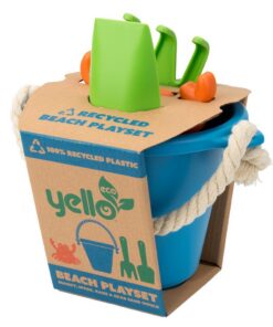 De Yello Eco emmersett is gemaakt van 100% gerecycled plastic de essentiële set om mee te nemen voor een dagje strand. Bevat alles wat kinderen nodig hebben voor een milieuvriendelijke, leuke speeldag op het strand – inclusief een emmer met 100% katoenen handvat, schep, hark en krabzandvorm. Door zandkastelen te bouwen kunnen kinderen hun creativiteit en fijne motoriek ontwikkelen terwijl ze fantastisch strandplezier beleven. Sterk en duurzaam voor een hele zomer lang strandplezier. Emmerformaat 18,5 cm x 15,8 cm gemakkelijk in te pakken voor een dagje strand en tegelijkertijd een behoorlijk groot zandkasteel te maken.
