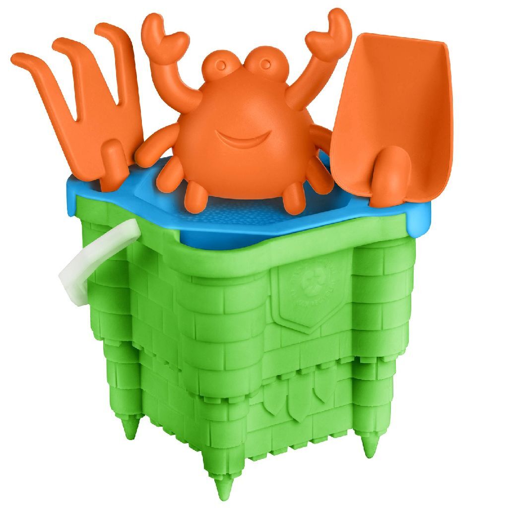 DeYello Eco emmerset is de perfecte aanvulling voor dagen op het strand. De emmerset is gemaakt van 100% gerecycled PP en bevat een kasteelvormige emmer, schep, hark, zeef en krabzandvorm. Met deze duurzame en robuuste set kunnen kinderen graven, zeven en verzamelen tijdens hun strandtrip, wat het oplossen van problemen en rollenspelplezier stimuleert. Alle items in de set zijn BPA-vrij, wat betekent dat ze volkomen veilig in gebruik zijn.