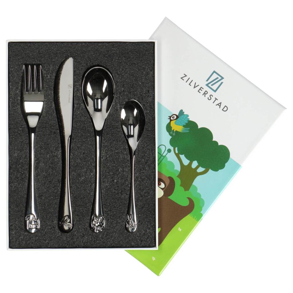 Het thema is huisdieren en op het bestek zijn een hond, vogel, kat en konijn gegraveerd. Het besteksetje is gemaakt van RVS 18/10. Poetsen is niet nodig en het besteksetje mag in de vaatwasmachine. Bestaat uit een vork, lepel, mes en dessertlepel en wordt geleverd in een bijpassende geschenkverpakking.