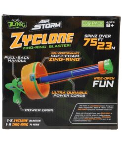 Met deZing Zyclone Air Storm Zing Ring Blaster vuur jij de ronddraaiende ring moeiteloos af! Hij vliegt tot wel 23 meter. Mik op een doelwit, schiet je weg door een hindernisbaan, of maak er een leuk schiet-en-vang spel van. Geschikt voor kinderen vanaf 8 jaar.